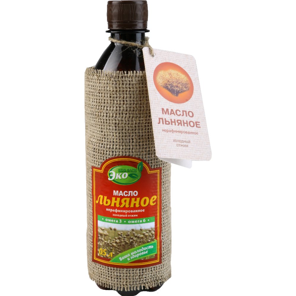 Масло льняное «Клуб Фарм Эко» нерафинированное, 500 мл.