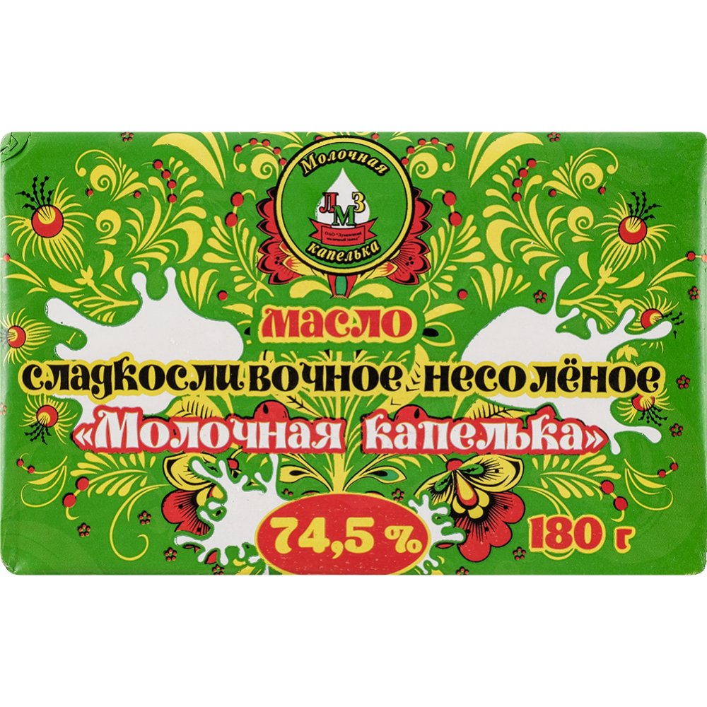 Масло сладкосливочное несоленое «Молочная капелька» 74.5%, 180 г