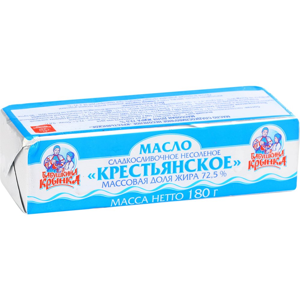 Масло сливочное «Бабушкина крынка» Крестьянское, несоленое, 72.5%, 180 г0 г