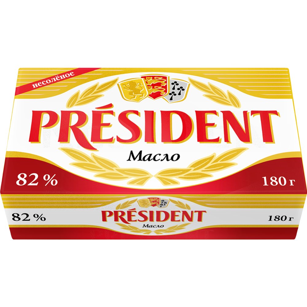 Масло кислосливочное «President» несолёное, 82%, 180 г