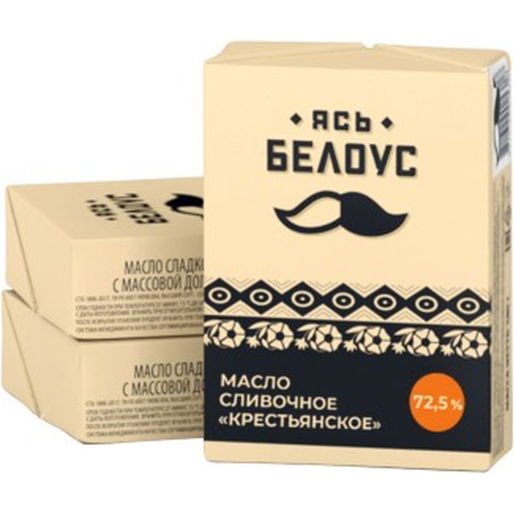Масло сливочное «Ясь Белоус» Крестьянское, несоленое, 72.5%, 180 г